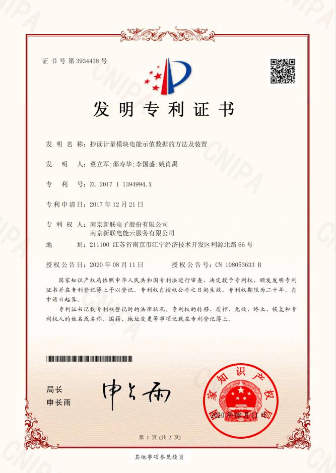 日前,我公司申請(qǐng)的發(fā)明專(zhuān)利“抄讀計(jì)量模塊電能示值數(shù)據(jù)的方法及裝置”獲得國(guó)家知識(shí)產(chǎn)權(quán)局授權(quán)(專(zhuān)利號(hào):ZL201711394994.X)。該發(fā)明可有效提升抄表數(shù)據(jù)的實(shí)時(shí)性、準(zhǔn)確性和同時(shí)性,并能提高設(shè)備工程安裝效率,節(jié)約安裝成本,從根本上解決了通常抄表設(shè)備安裝效率低、易出錯(cuò)、數(shù)據(jù)延遲、存在統(tǒng)計(jì)誤差等問(wèn)題,具有可觀(guān)的經(jīng)濟(jì)效益和推廣價(jià)值。