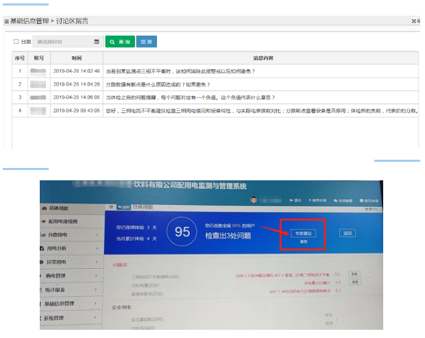 某飲料有限公司通過用電體檢留言:當看到某監(jiān)測點三相不平衡時,該如何消除此報警或以后如何避免? 分路數據有斷點是什么原因造成的?如果避免? 當體檢之后的問題提醒,每個問題對應有一個負值。這個負值代表什么意思?
