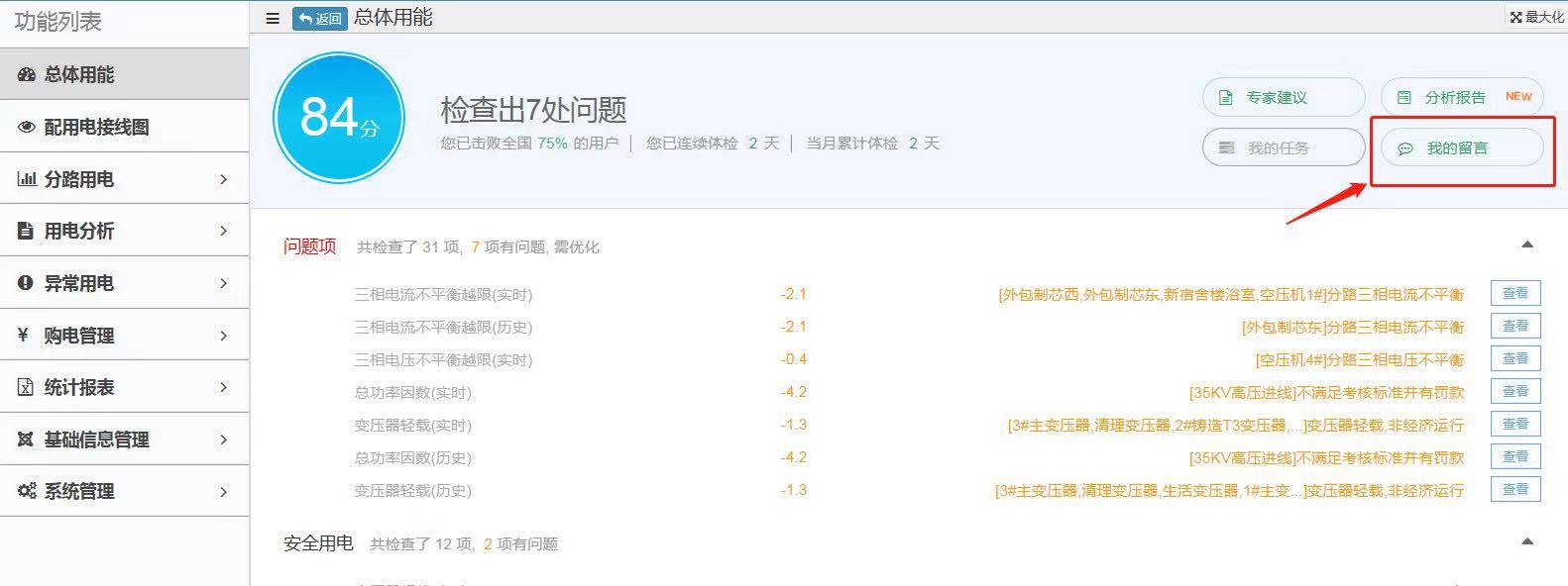 并通過用電體檢留言功能與專家溝通體檢分值改善用電質量,最終獲得滿分100分的體檢分值!
