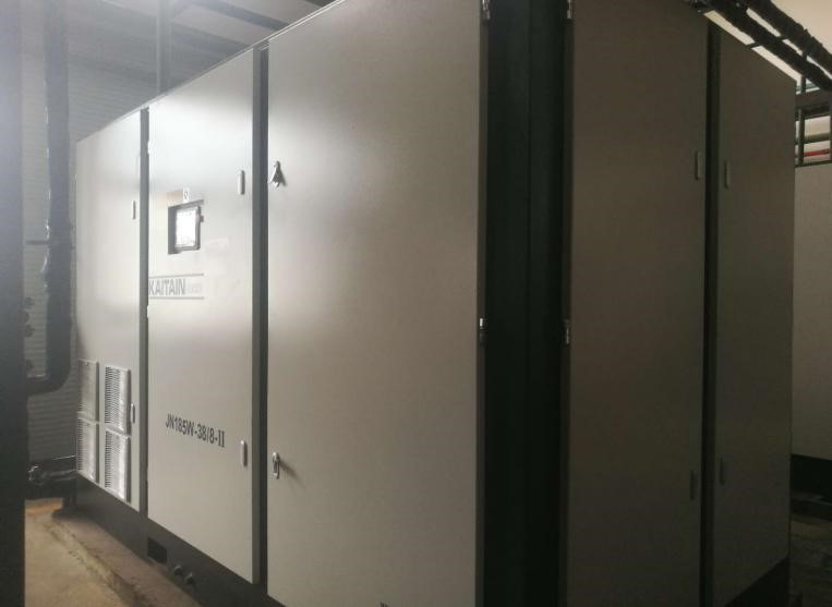 2018年公司所做的最重要的節(jié)能項(xiàng)目是空壓機(jī)改造更新項(xiàng)目,從2017年下半年就開始調(diào)研兩級(jí)壓縮型空壓機(jī),共調(diào)研了三個(gè)品牌,最終選擇在無錫地區(qū)使用較多的開山兩級(jí)壓縮空壓機(jī)。先根據(jù)測(cè)試數(shù)據(jù)確定使用200KW工頻和185KW變頻機(jī),目標(biāo)是每小時(shí)節(jié)能79kwh。7月底開始投入使用,在用氣量峰值出現(xiàn)時(shí),壓力降比較大,造成末端設(shè)備因壓力低而停機(jī),盡管正常情況下使用是沒有問題的,而且185kw變頻機(jī)使用頻率在25Hz。后經(jīng)過8、9、10三個(gè)月的數(shù)據(jù)積累和分析,確定再增加一臺(tái)11m3/h的永磁變頻兩級(jí)壓縮空壓機(jī)(功率55kw),從11月13日投入使用以來經(jīng)統(tǒng)計(jì),節(jié)能效果明顯。使用的空壓機(jī)節(jié)能核心技術(shù)是兩級(jí)壓縮和變頻以及永磁變頻。