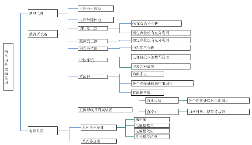 分路功率因數(shù)偏低往往反映用電分路能源利用效率不高,但考慮到電鍍對整個生產的重要性,對該問題進行了系統(tǒng)分析。