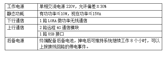 ◇后備電源:終端配備后備電容,可上報(bào)接線回路的停電事件。也可選配后備電池。